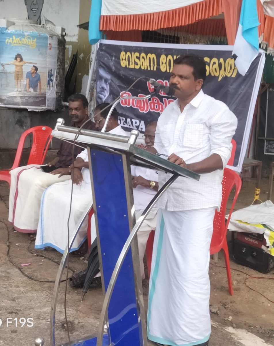 2025 മേയ് 24 ന് വൈകിട്ട് 5 മണിക്ക് കൊല്ലം ചിന്നക്കടയിൽ നടന്ന ‘വേടന് ഐക്യദാർഢ്യം’ പ്രഖ്യാപിച്ച് SEAPA നടത്തിയ സമ്മേളനം ശ്രീ.പെരിനാട് ഗോപാലകൃഷ്ണൻ ഉദ്ഘാടനം ചെയ്യുന്നു.